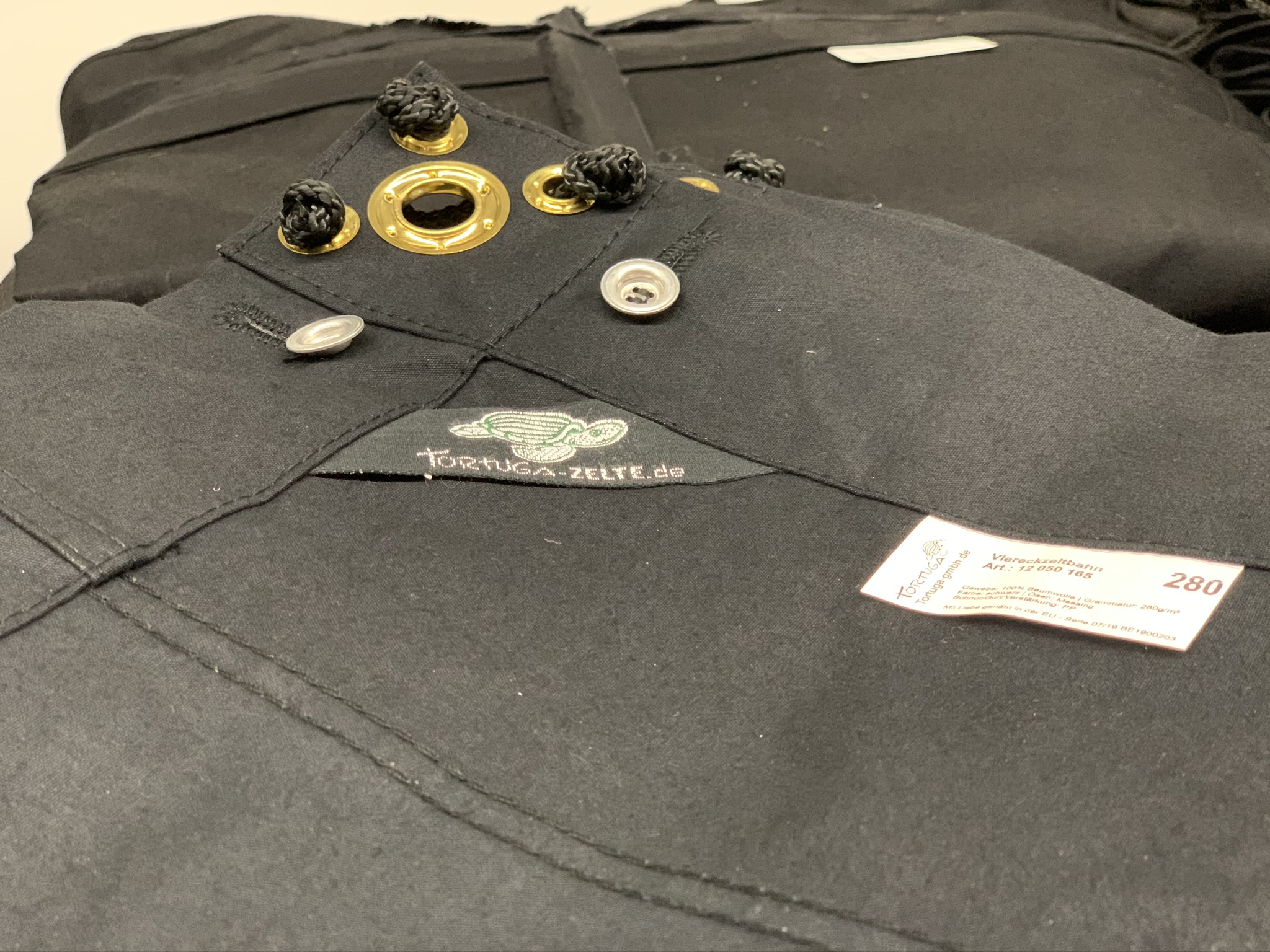Unsere Artikel besitzen in der Regel alle ein Markenschild. Die Weissen Zelte sind mit PVC Etiketten angeschrieben und die Schwarzen Zeltplanen mit unseren Webetiketten. Auf den Typenschildern aus Taft befindet sich unser Logo oder unser Name. Die von uns verwendeten Aluminium Vierlochknöpfe stammen aus einer Deutschen Produktion und weisen keine scharfen Kanten auf. Unsere Ösen werden ebenfalls in Deutschland gefertigt.